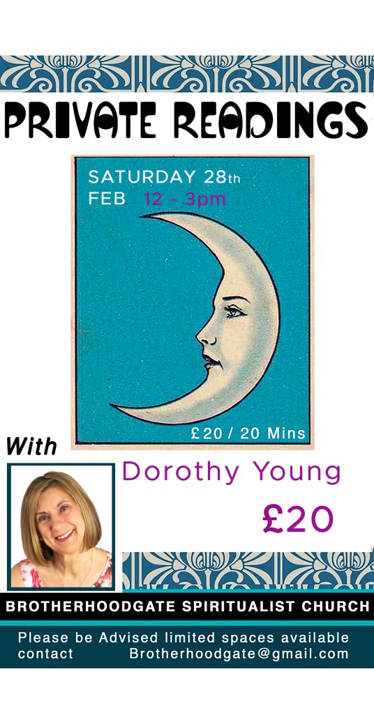 Sat 28th Feb —12 —4pm – Private Readings with Dorothy Young